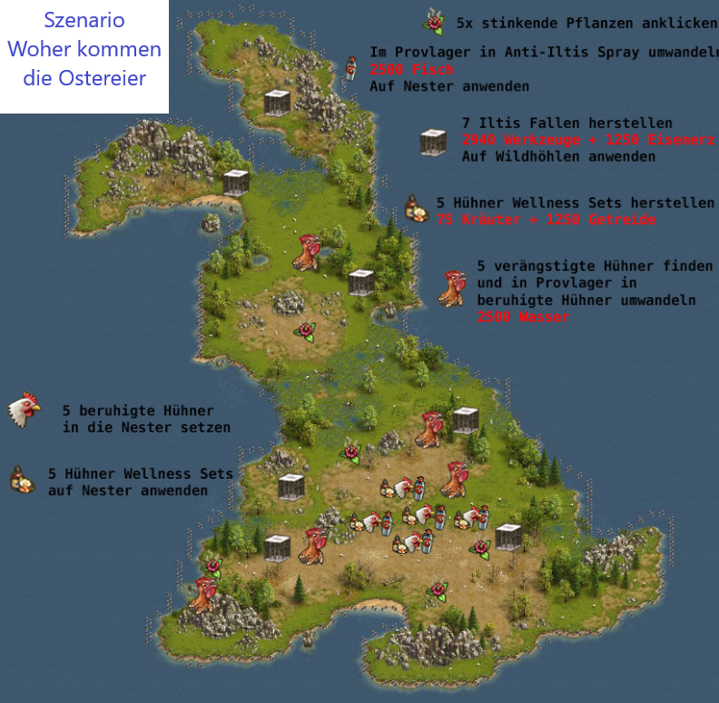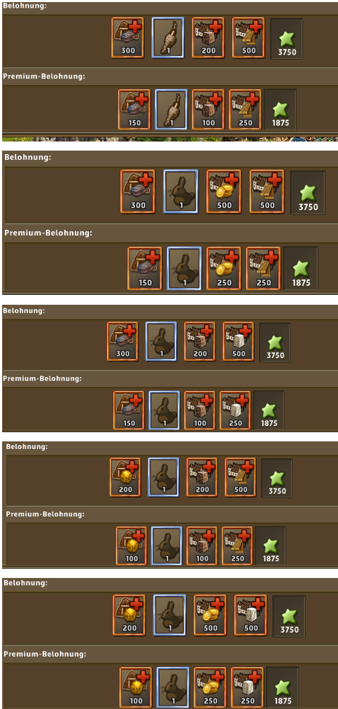 Die Rohstoffe und Erfahrungspunkte in der Belohnung für,rot hinterlegte, Abenteuer werden verdoppelt.