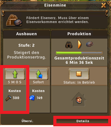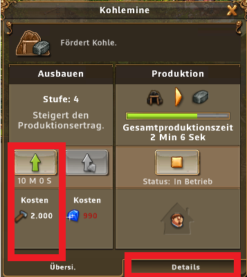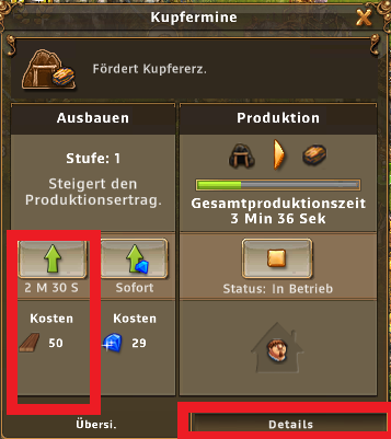 Bei der Produktion von Siedlern gibts hier einige Gebäude und Förderungen